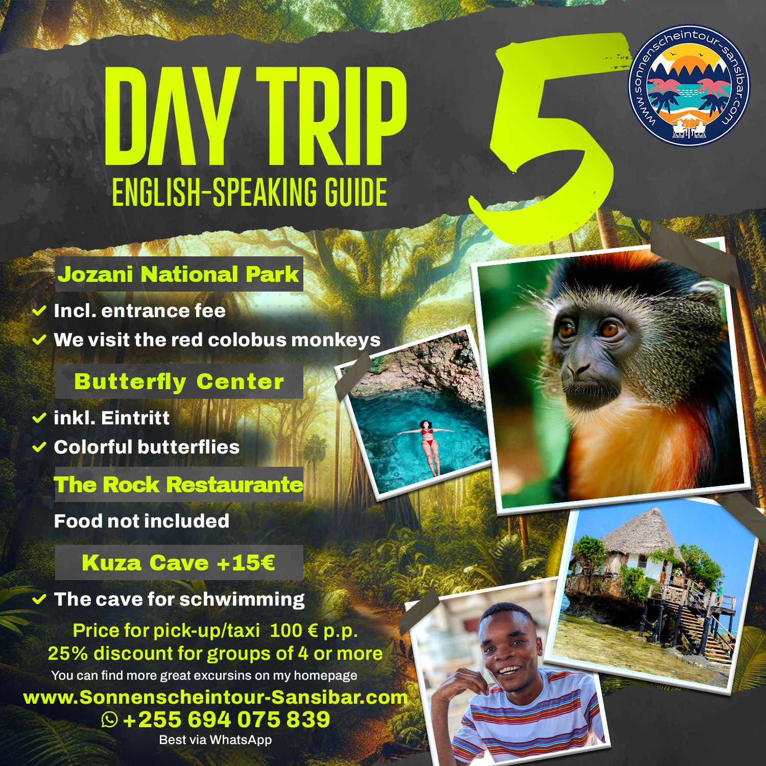 Experience the natural beauty and adventure of Zanzibar with our Day Trip 5, which brings you closer to the island’s most impressive natural treasures.